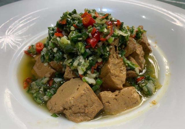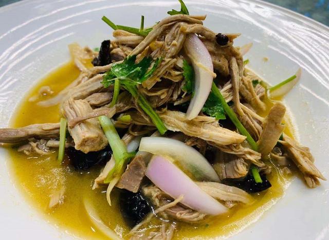 这道菜也是下酒必备的小菜,鸡肉酸香可口,加上一些腐竹,吃起来更加的有嚼头。