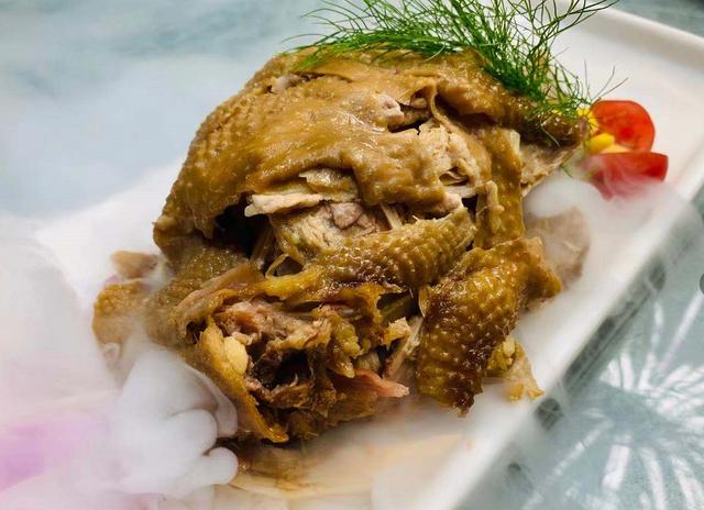 鸡肉卤得特别到位,每一块肉都非常入味,肉质非常软烂,咸香适口,尤其是小孩子特别喜欢吃,上桌时配上干冰,显得非常高大尚。