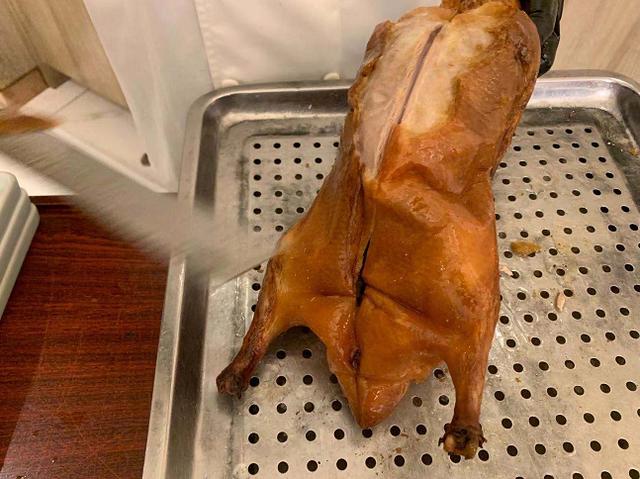 烤鸭无疑是招待客人的一道硬菜,尤其是金黄酥脆的鸭皮,蘸着白糖吃,那滋味确实很过瘾。
