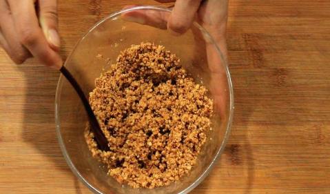 花生仁放凉以后,把红衣服搓掉,放进一个牢固的包装袋里,用面杖损坏,再擀成细致一些的花生粘预留。在花生粘中添加食用盐2克入底味,食用油10克,拌和至沒有干花生粘就可以。假如喜欢吃甜的,还可以换为老红糖或是纯蜂蜜。