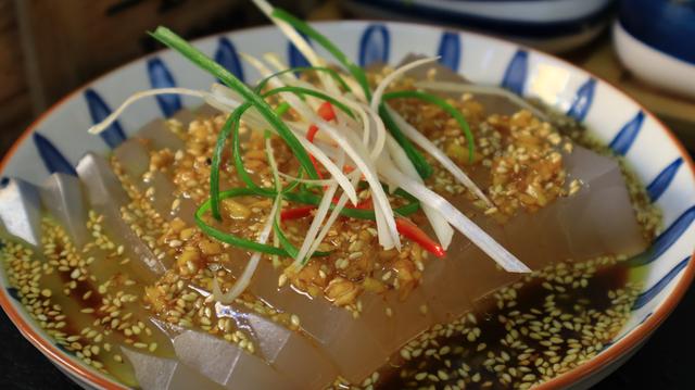 1、猪皮冲洗一下,然后冷水下锅加入葱姜料酒去腥,大火煮开,猪到猪皮变色打卷儿,捞出来。