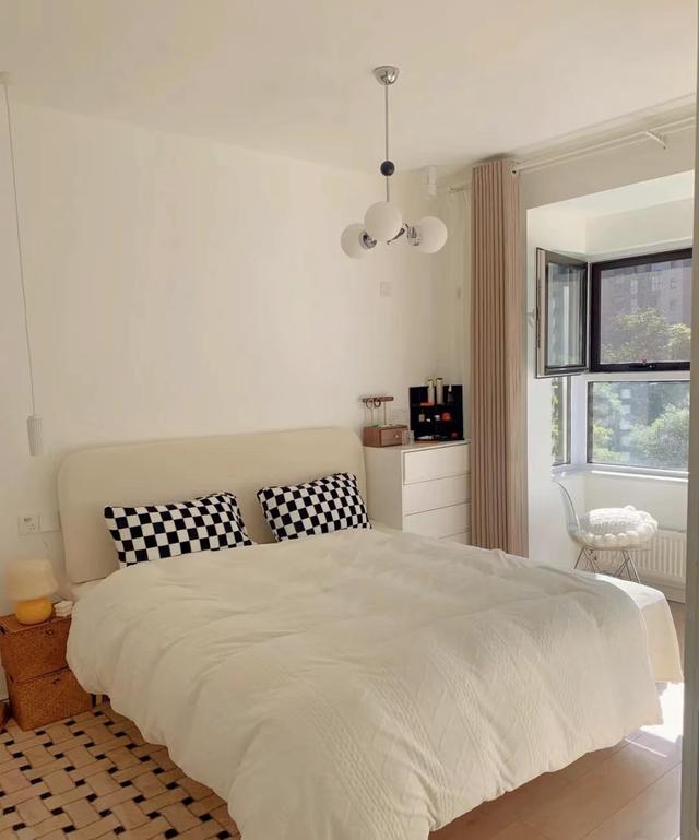 这个设计让衣柜整体更整体,白色柜门模糊了存在感,视觉上更简洁,更整体,更宽敞。