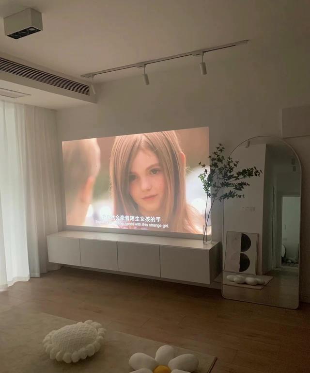 ,软装的选择上也非常的简单干净。这也让视觉上也扩大了空间感。你可以挂画和投影。偶尔看电影的体验直接惊艳。4K电影院的体验有看大屏幕直播的感觉。
