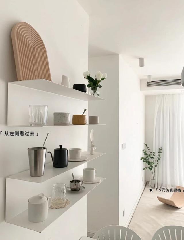 摆上好看的杯子或者装饰品和鲜花,让墙壁不再单调,充满了美感和浪漫气息,一定程度上提升了餐厅的格调,凸显了主人的气质和品味。