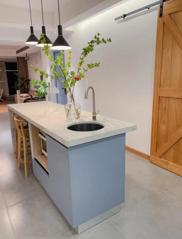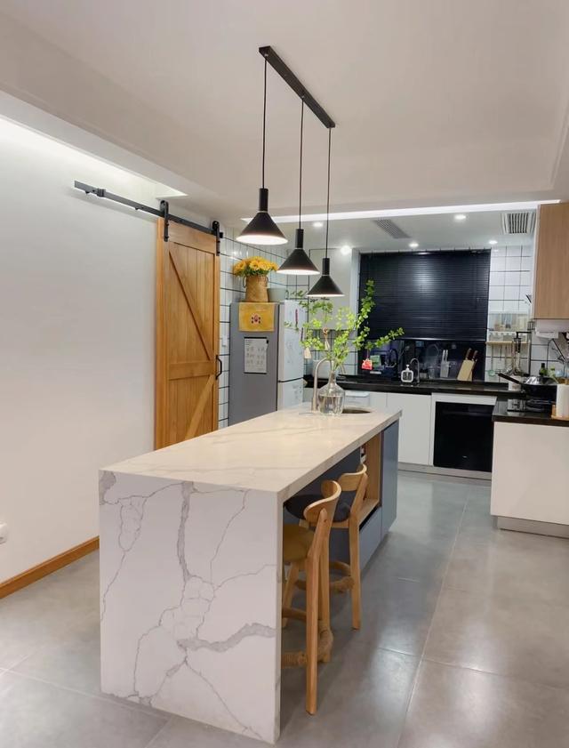 餐厅的岛桌设计,既能增加空间的颜值,又能增加对生活的仪式感,让整个家的品味也得到了提升,让餐厅和餐厅这三个空间在整体上显得不突兀,更美观。同时可以当餐桌用,既节省了空间,又增加了储物空间,简直就是储物隔断。