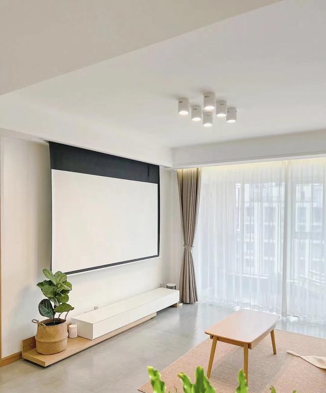 客厅侧挂,是电气通风、空调等设备工程的隐蔽层,使房间更具视觉感染力,提升房间整体装饰效果。主灯采用六盏筒灯,不占空间,同时增加空间的柔和氛围,营造温馨感,减少空间的压力。
