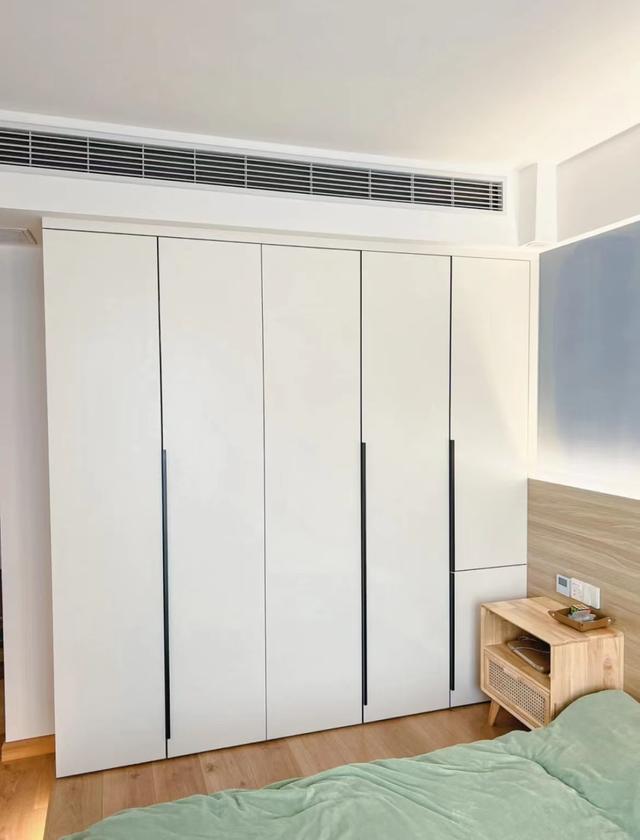 定制衣柜配一个自顶向下的门,设计更简单,整个自顶向下的门坚固,让空间显得更高,室内空间设计可以根据需求更灵活的组合。