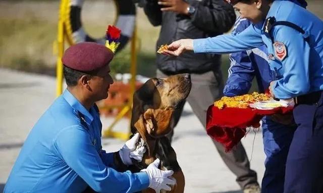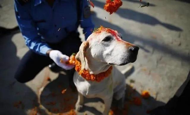 尼泊尔在11月14日的时候会为狗狗过节,这天人们会将狗狗当做神明来崇拜,举办盛会,为它们盛装打扮和提供美食。