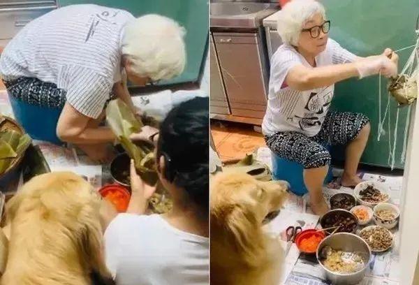 就像这只金毛一样,乖乖坐着奶奶旁边等待自己专属的“汪汪粽”,太幸福了!