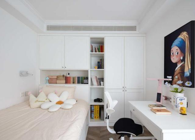 儿童房根据场地大小定制浅色,满足收纳、休息、学习需求。如果加入一些绿色植物,气氛会更加轻松舒适。