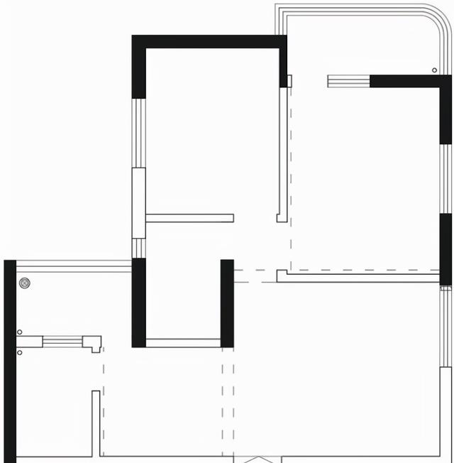 房子呈两室两厅格局,各功能空间面积相对较小,客厅没有阳台和大玻璃窗,采光不足。