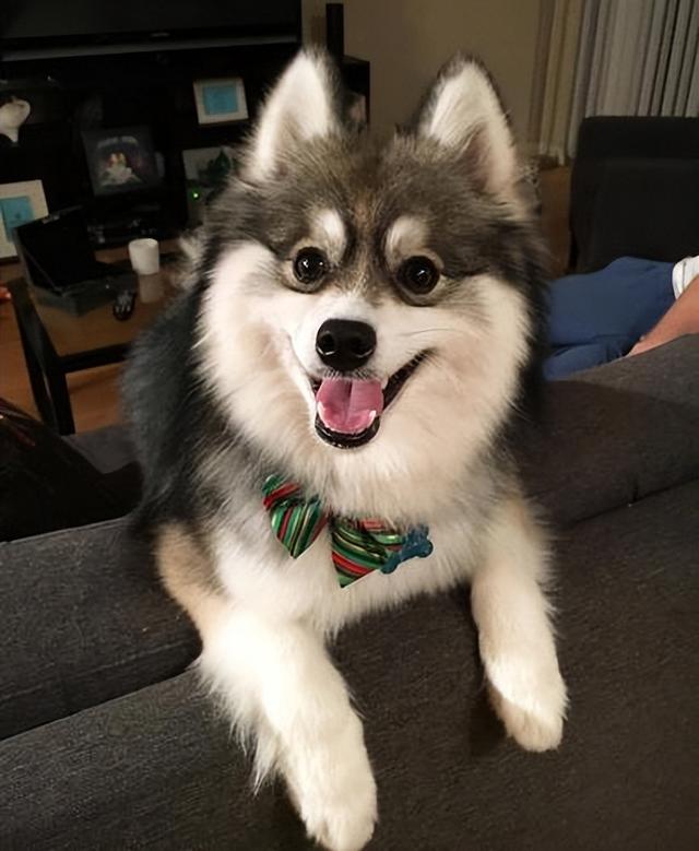 经过人工繁育,这两种狗生下的博士奇,体型比博美大,但比哈士奇小,看起来非常可爱。