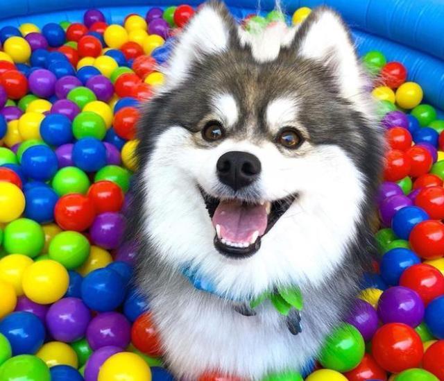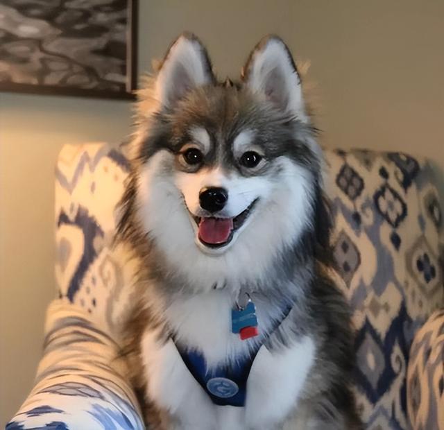 博士奇,听名字应该能猜到,它其实就是博美和哈士奇结合,生下的后代。