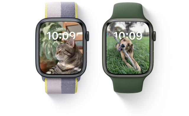 新的watchOS 9中,人像表盘更有看头,如新增了对你们养的宠物猫、狗以及风景照填空部分的支持。