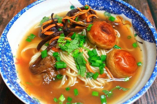 主要食材:干茶树菇 干香菇 新鲜口蘑 新鲜虫草菇 面条 香菜 葱花