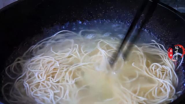 4,水开后下入面条,尽量选择细一点,而且不易煮断的,差不多点1-2次水就可以了,不要时间太长,煮得太软,面没有嚼头。
