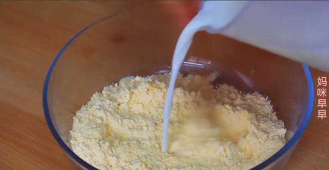 1,盆里倒入200克玉米面,然后用200毫升的热牛奶先把面烫一下。这样不仅口感细腻些,而且吃起来也香。