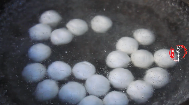 3,锅里水开之后,下入汤圆煮熟,轻轻推动一下,煮到汤圆一个个都漂浮起来就可以捞出了,捞出后放入凉水中。