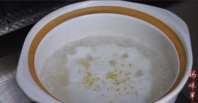 3,泡好的大米加入一点儿油,然后大火烧开,盖上盖子转小火焖。
