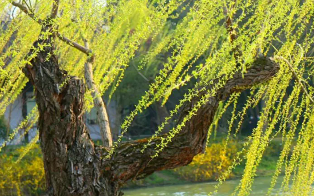 画家拿起画笔画你,一天一个颜色;鹅黄而后嫩绿,细细的黑瘦枝条,一夜间柔软,膨胀成一围少妇的细腰,挑逗着赏春人的目光。