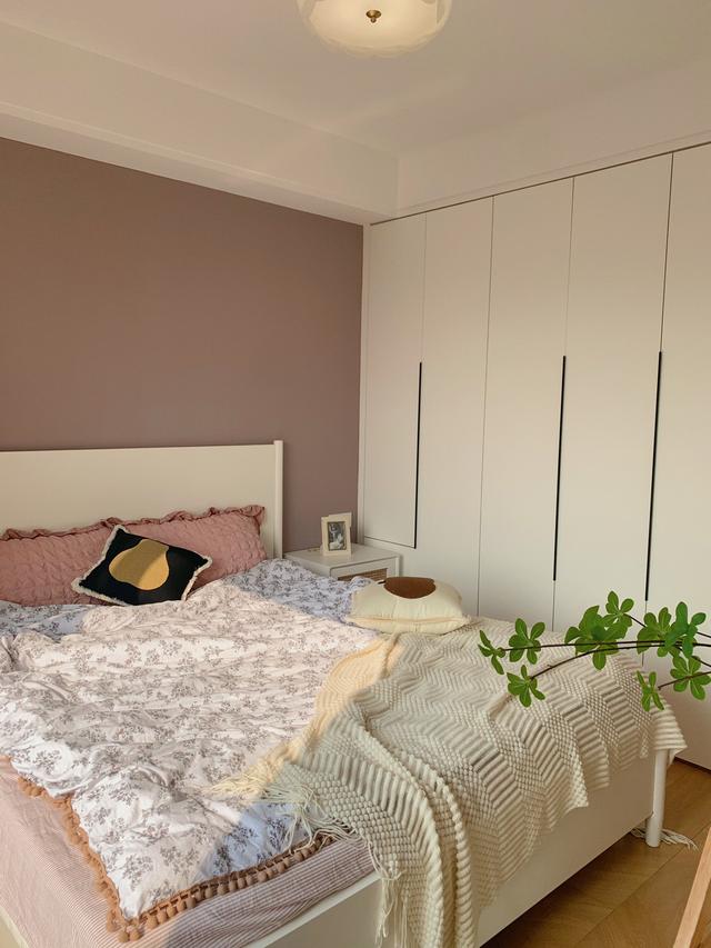 她家是通刷了纯白色乳胶漆,只有卧室背景墙刷了莫兰迪紫,其他都是直接大白色,很多朋友说会不会惨白,等家具软装和灯光进场后,真的不会单调,色调自然就会偏暖一些了