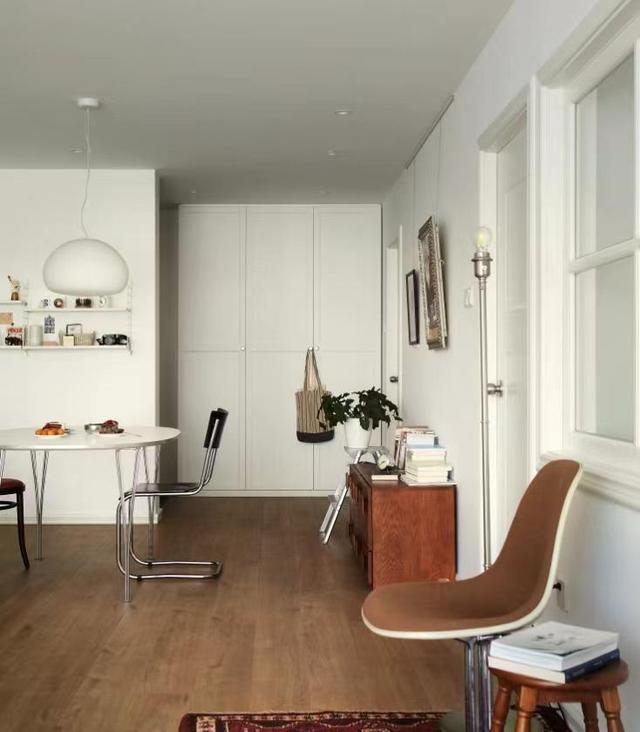 大大增加了衣物的收纳。放一个小沙发和书桌,足够一个人看书办公。