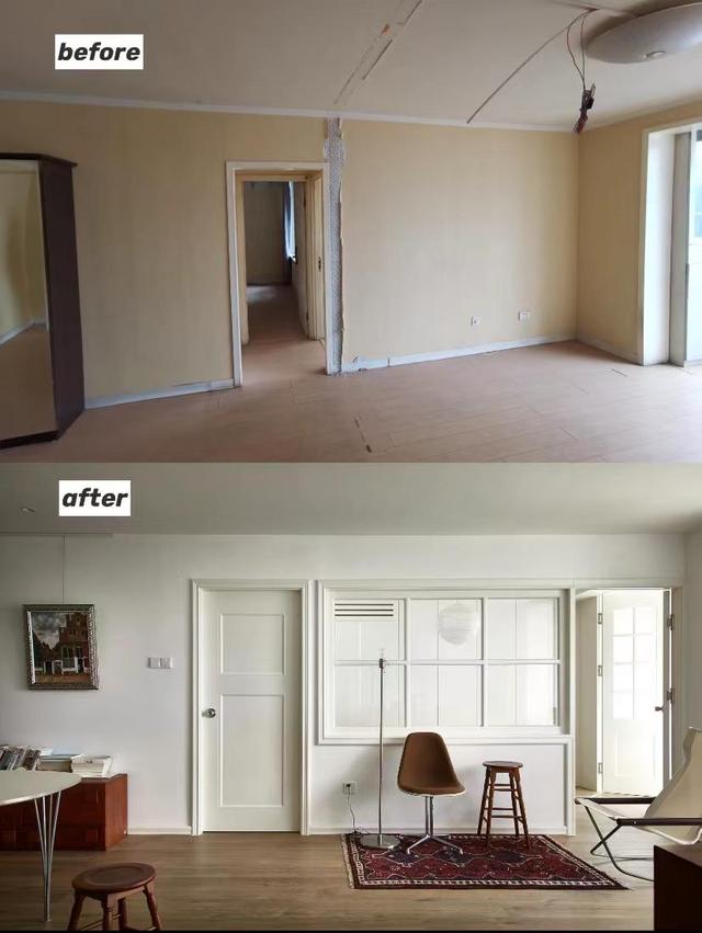 。客厅瞬间明亮清爽,整个房子从破旧沉闷中呈现出轻盈向上的姿态。