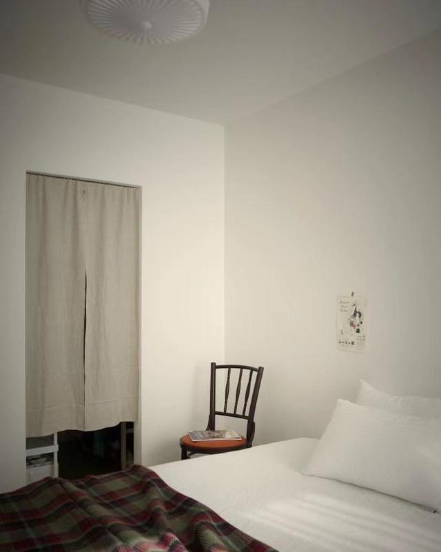主卧简洁雅致,没有床头柜,也没有床头柜。