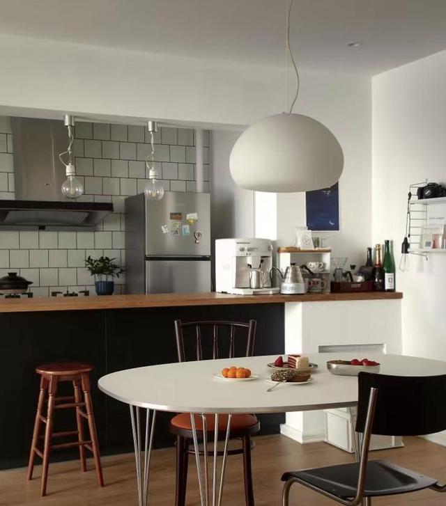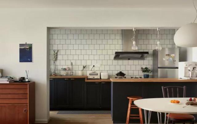 为了满足业主对一体化互动空间的渴望,设计师直接去掉了玻璃门,做了一个开放式的岛台。
