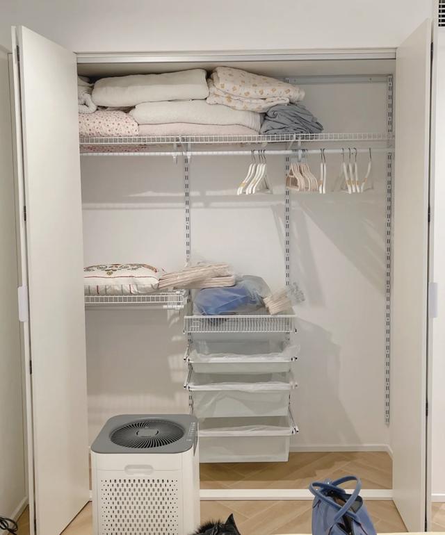 如果你家也不想做衣柜,可以试试做一套金属壁橱,只有用过才知道有多香!这也是今天也分享给大家的一个收纳设计案例!