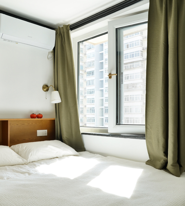 四连动的推拉门隔断+窗帘,可以自由切换空间形态,最大限度地将采光引入客厅。