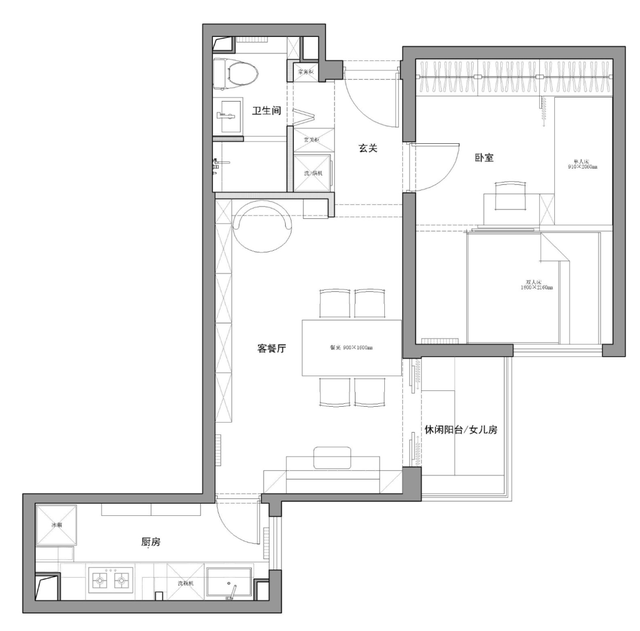 原来的户型是一房一厅,现有的空间肯定满足不了一家四口的居住需求。不过考虑到大女儿只会在寒暑假回家居住,如何规划空间,平衡空间的功能也是本案设计的重点之一。
