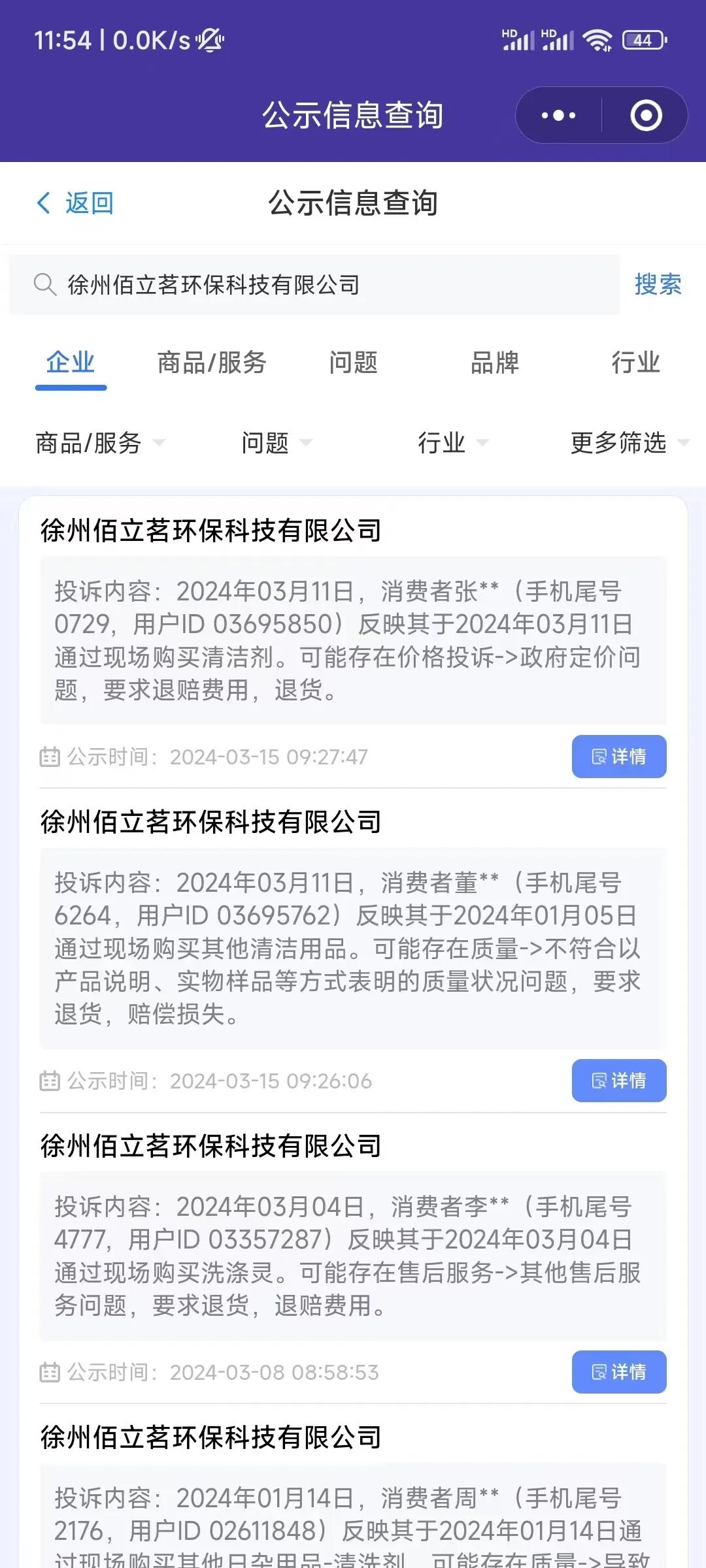 涉及“徐州佰立茗环保科技有限公司”的投诉信息有82条