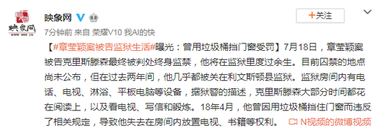 7月18日,章莹颖案被告克里斯滕森最终被判处终身监禁,他将在监狱里度过余生。目前囚禁的地点尚未公布,但在过去两年间,他几乎都被关在利文斯顿县监狱。监狱房间内有电话、电视、淋浴、平板电脑等设备,据狱警的描述,克里斯滕森大部分时间都花在阅读上,以及看电视、写信和锻炼。18年4月,他曾因用垃圾桶挡住门窗而违反了相关规定,导致他失去在房间内放置电视、书籍等权利。