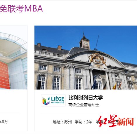 红星新闻记者随后查询了解到,苏州某国际商学院提供比利时列日大学(University of Liege)高级企业管理硕士的课程,学习地点在苏州,学制2年,学费19.2万,课程简介显示“免联考,大专可读”。