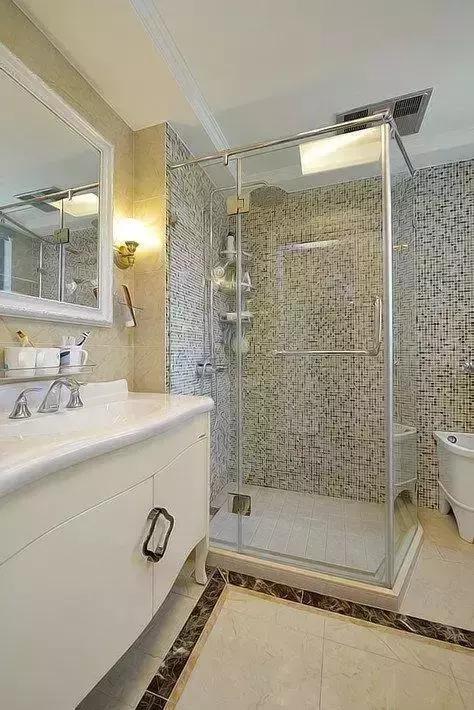 卫生间安装了淋浴房,便于干湿分离,墙面用马赛克装饰,增添了时尚气息。