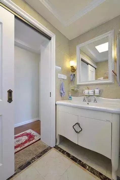 白色浴室柜和浴室镜,简洁明亮显大方,浴室柜下方又带有收纳功能非常实用。