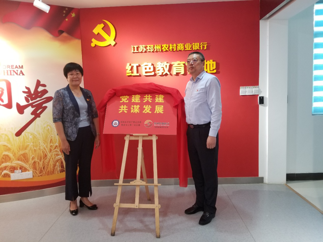 活动中,自然资源局副局长彭平与邳州农商银行党委书记、董事长张军,共同为共建双方“党建教育基地”及“抵押登记便民服务网点”揭牌。共建双方还共同参观了王杰支行红色教育基地、徐塘支行及润和工场众创空间。