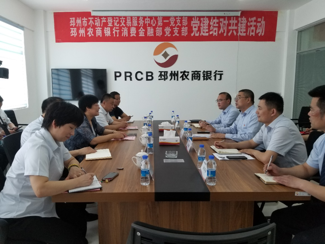 为进一步创新党建工作思路,提升党建工作水平,加强共建双方交流合作,全面提升服务效能,6月3日,邳州市不动产登记交易服务中心与邳州农商银行开展党建共建活动。