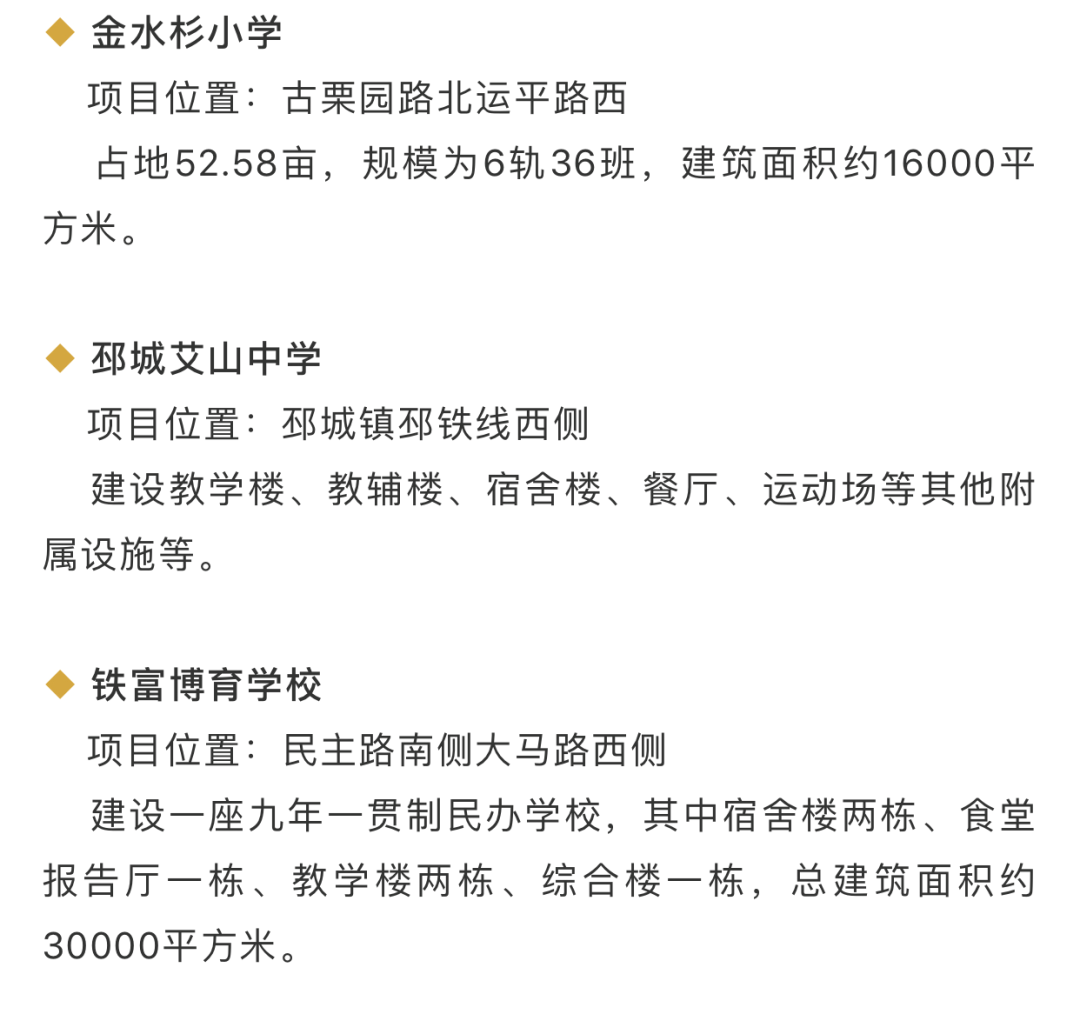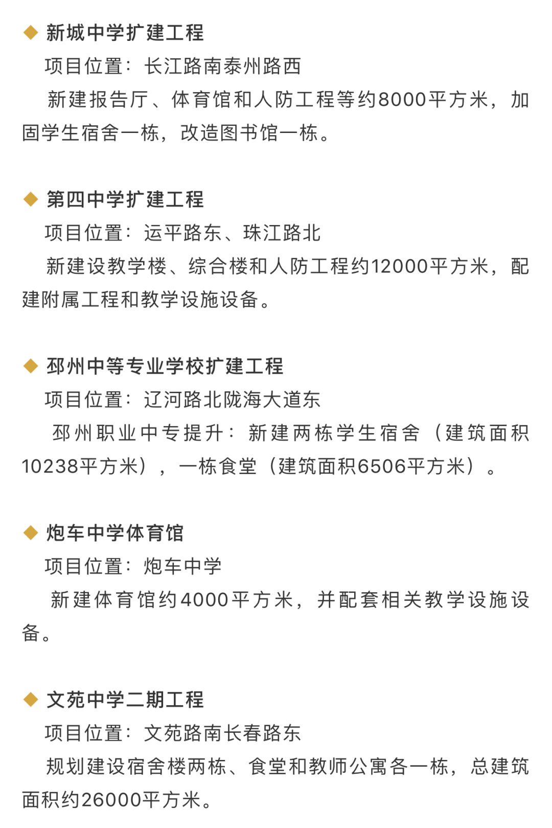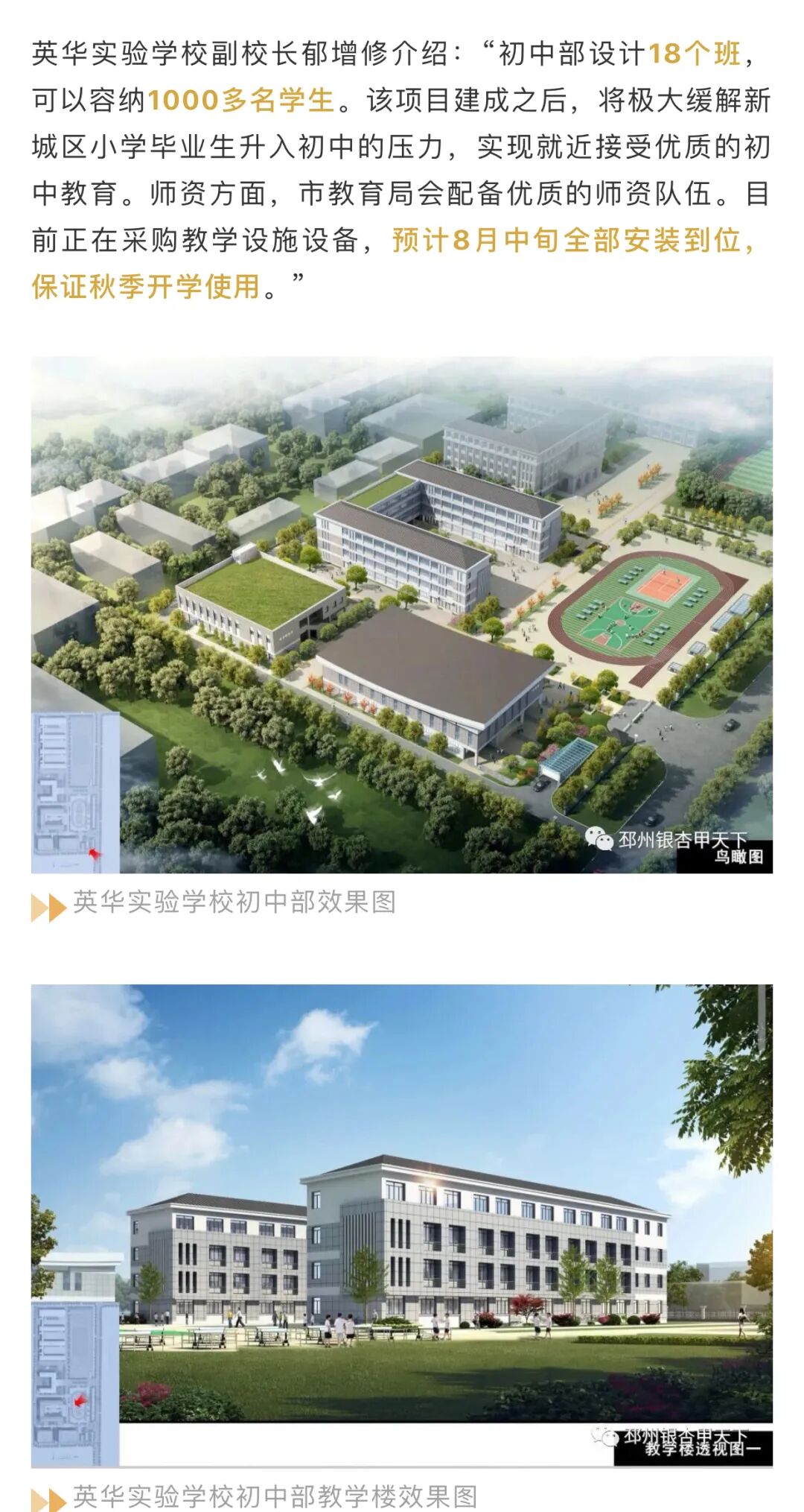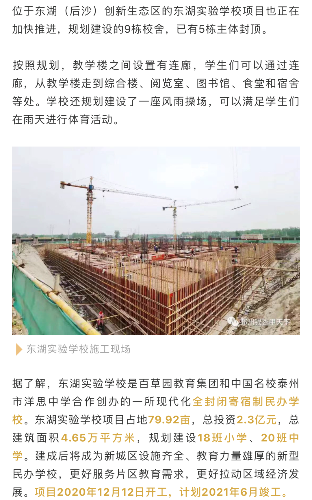 作为2021年城建重点工程,我市继续加大教育基础设施投入,新建、改扩建一批中小学校。目前,位于新城区的英华实验学校初中部和东湖实验学校正在加快建设,计划今年秋季开学投入使用。