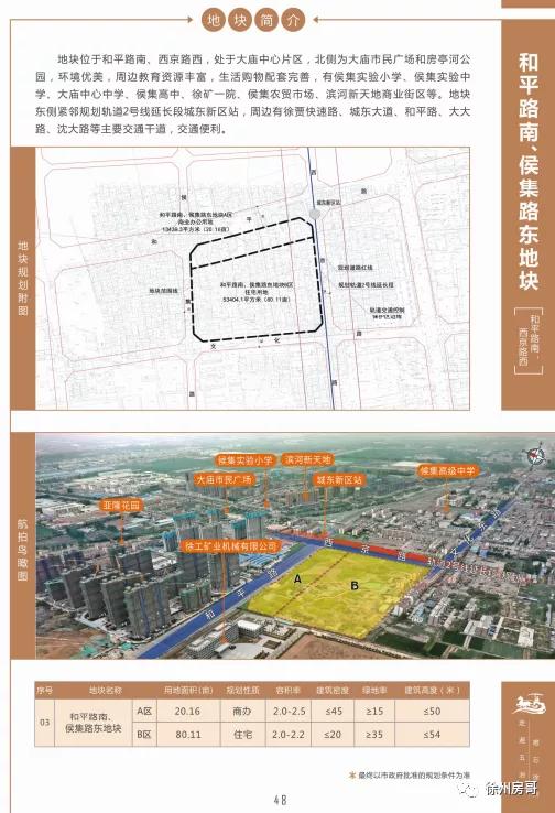 和平路南、侯集路东地块分为A、B区,A区为商办用地,占地20.16亩,容积率2.0-2.5,限高50米。B区为住宅用地,占地80.11亩,容积率2.0-2.2,限高54米。地块位于和平路南、兴镇路西,处于大庙核心,西侧是徐工矿机,东侧紧邻侯集高级中学、侯集实验中学,北面不远就是大庙市民广场,地理位置优越,更受关注!