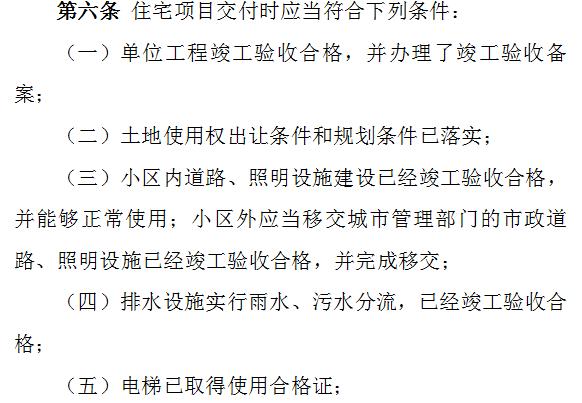 住宅项目交付时应当符合下列条件: