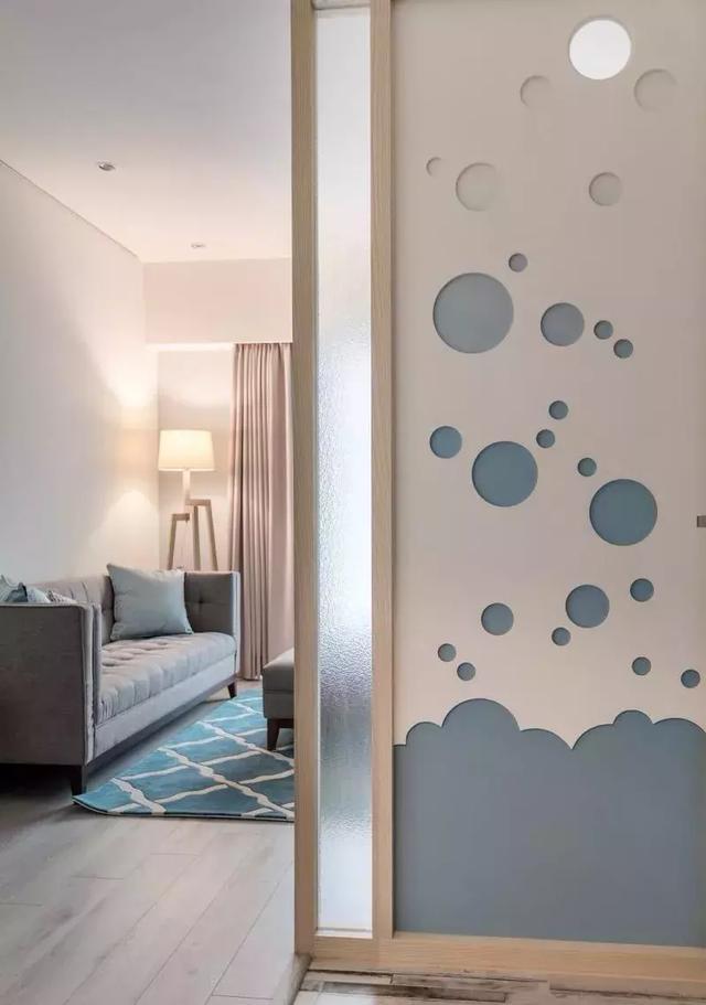 从大门进去的一瞬间,一片蓝天白云就停留在眼前,这是一个意象派的屏风,让你从入门开始就开始沉浸在一个自然舒适的空间中。