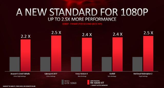 相比STEAM显卡霸主GTX 1060来说,RX 6600 XT可以提供近2.5倍的性能