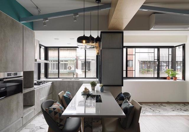 利用隔断后面的空间,根据家里的空间布局和居住需求,可以做成餐厅和办公区,既能保证视野开阔,又能让后方有一定的独立性。