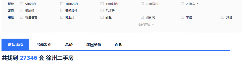 个徐州的二手房市场,挂牌量27346套,而15年以下房龄仅有10822套。