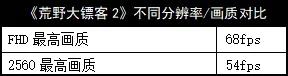 《荒野大镖客2》的最高画质是非常吃硬件资源的,FHD分辨率下可以跑到68fps,2.5分辨率也有54fps。
