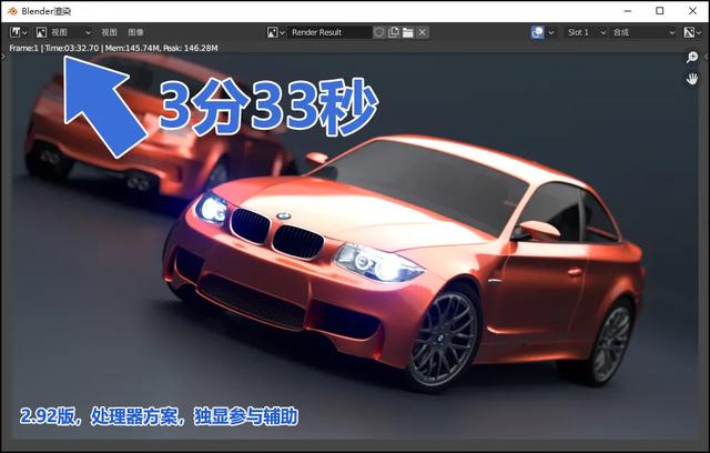 实际上,新版本的Blender 2.92已可使用独显加速,甚至可以直接使用GPU方案以独显主导计算。在同样采用处理器方案时,RTX 3060以5%~10%的GPU Load参与加速,时间进一步缩短到3分33秒。如果使用纯粹的GPU方案,以RTX3060主导,全过程只要夸张的43秒!