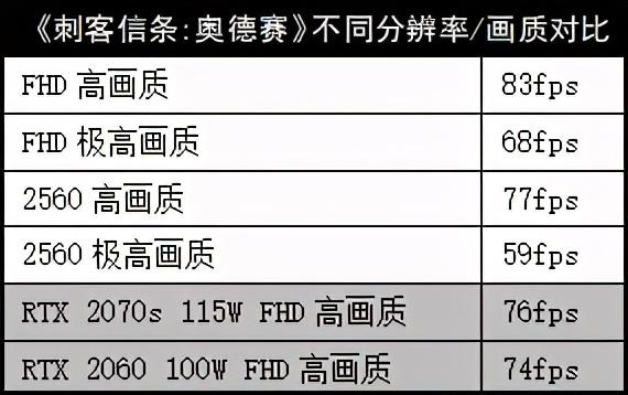 《刺客信条奥德赛》,2.5K极高画质可以达到59fps,也算是流畅了;如果降低到高画质,可以跑出超级流畅的77fps!而FHD下,高画质83fps,也轻松碾压RTX20系显卡。