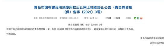 青岛公示的第二批次集中出让的100宗土地拍卖活动因故"中止"
